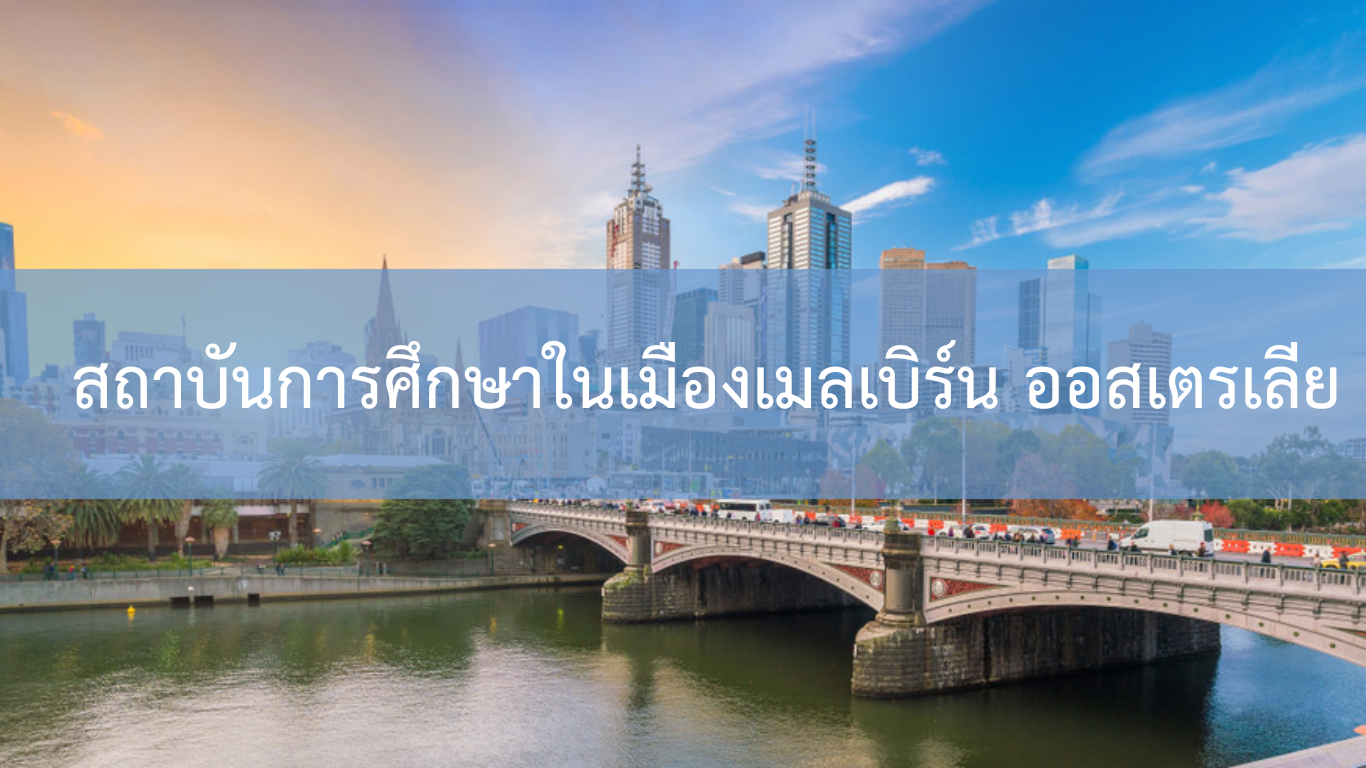 เมลเบิร์นเป็นเมืองหลวงของรัฐวิคตอเรีย ประเทศออสเตรเลีย เป็นที่ตั้งของมหาวิทยาลัยและสถาบันวิจัยระดับโลก เหมาะสำหรับการเรียนในระดับปริญญาตรีและวิชาชีพรวมถึงเรียนภาษาด้วย ผู้คนในเมลเบิร์นเป็นมิตร ให้การต้อนรับนักเรียน นักศึกษาต่างชาติเป็นอย่างดี